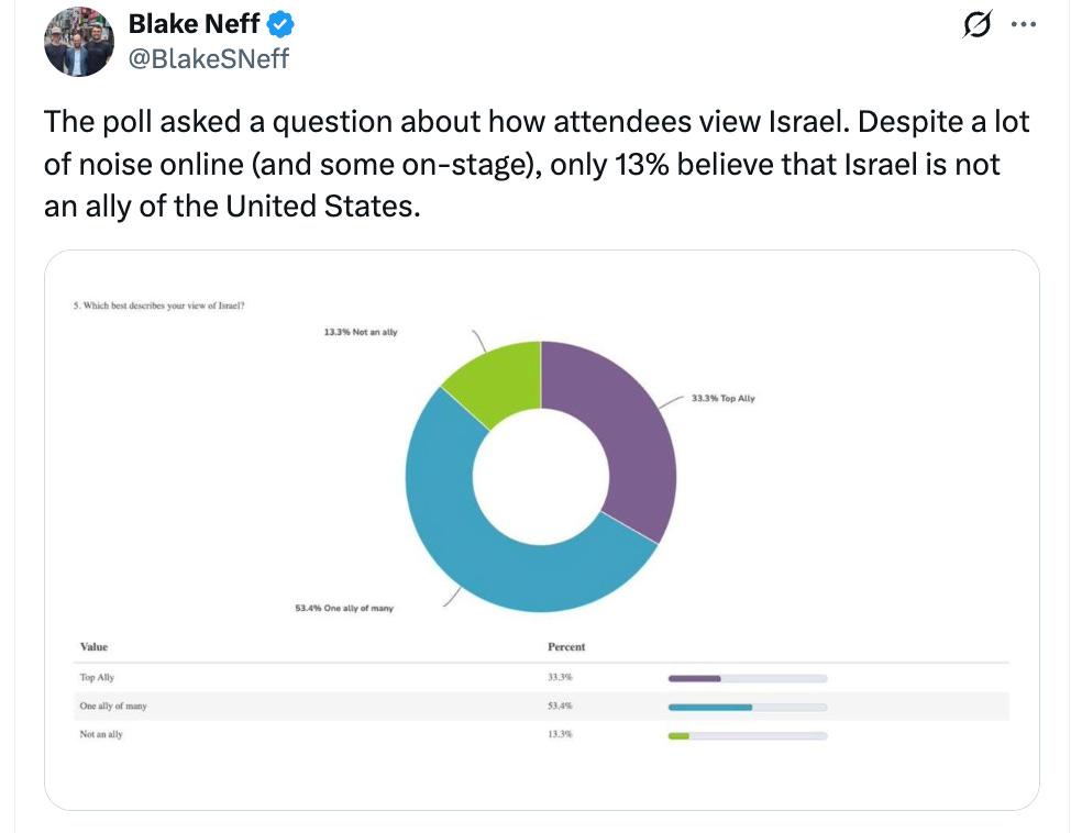 I was wondering in the episode what the reaction was in the room to Ben’s speech, or rather - how many of these kids are actually buying into the Candace/Tucker nonsense? This week I got my answer, when Blake Neff, Charlie Kirk’s producer, posted the results of a straw poll of the attendees (most were under 30 years old btw).
