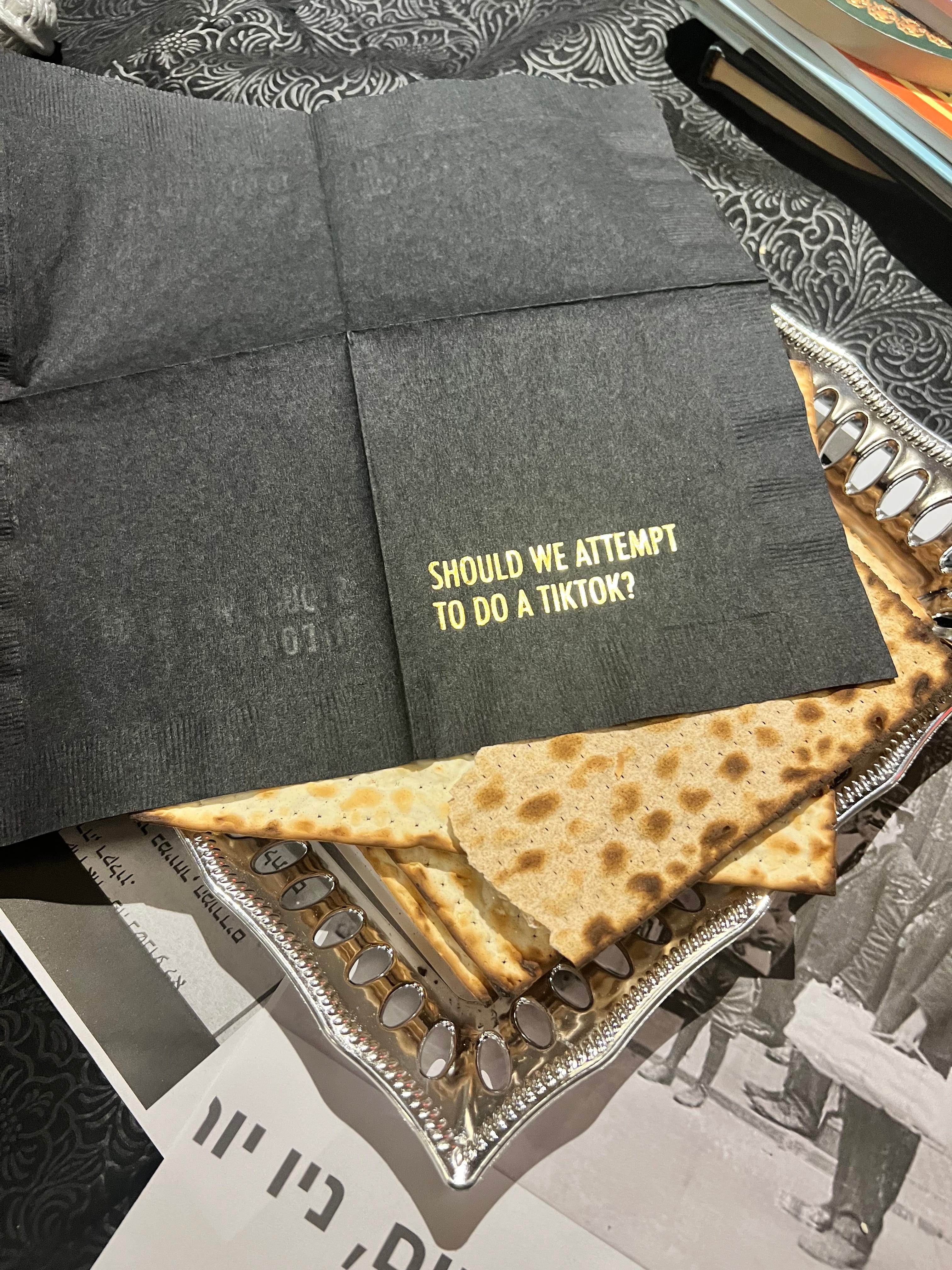 We are fresh off a friends-filled Seder in NYC with some of your favorite AAJ guests, future guests, and one adorable gentile baby who narrowly avoided sacrifice to our gods. My parents are in town from Israel (hi it’s Yael btw) so they conducted the Seder, which consisted mostly of stories about Ethiopian Jews, Louis Armstrong Youtube videos, and some tipsy, awkward singing. It was the very first Seder for a few of our guest, and hopefuly they won’t be disappointed if they ever get to attend a real one.